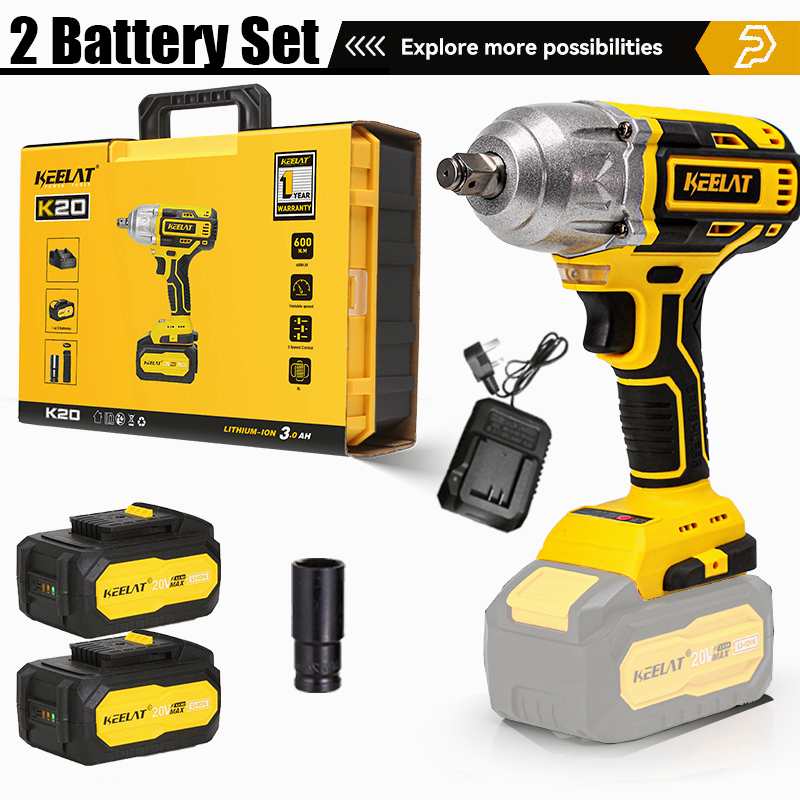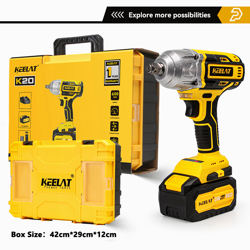 基拉特KID006 600N。M电动冲击扳手无绳大扭矩1/2“1/4”螺丝刀钻重型专业无绳冲击扳手插座电动工具可充电20V电池