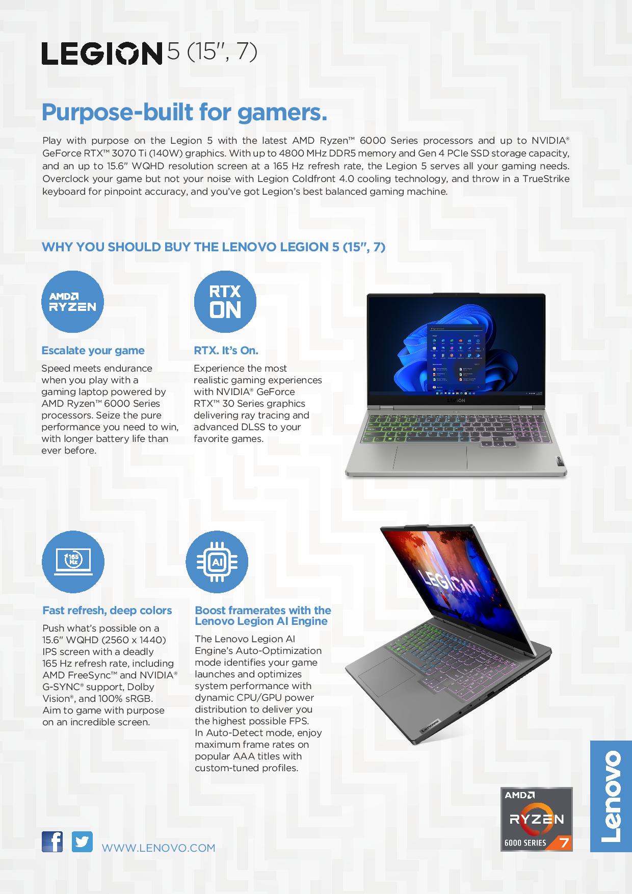 [RTX 3060] Lenovo Legion 5 15ARH7H | 82RD0002SB | 15.6" WQHD (2560x1440) | AMD Ryzen 7 6800H | RTX 3060 | 16GB RAM | 1TB SSD | Win11 home | 3Y Legion Ultimate Support