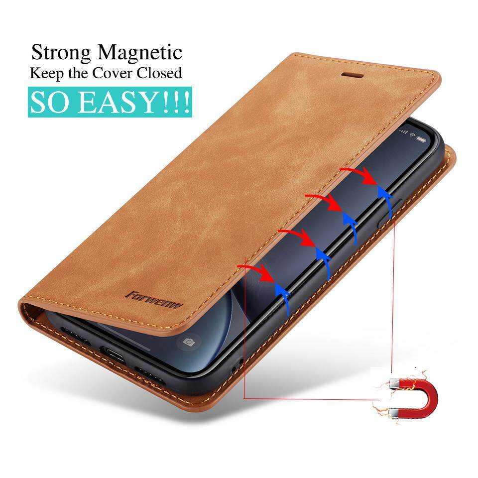 Iphone Xr 11 12 13 14 pro Xs Max X Card Wallet Holder Cover, Da sang trọng Vỏ điện thoại lật từ tính cho Iphone 8 7 6 Plus