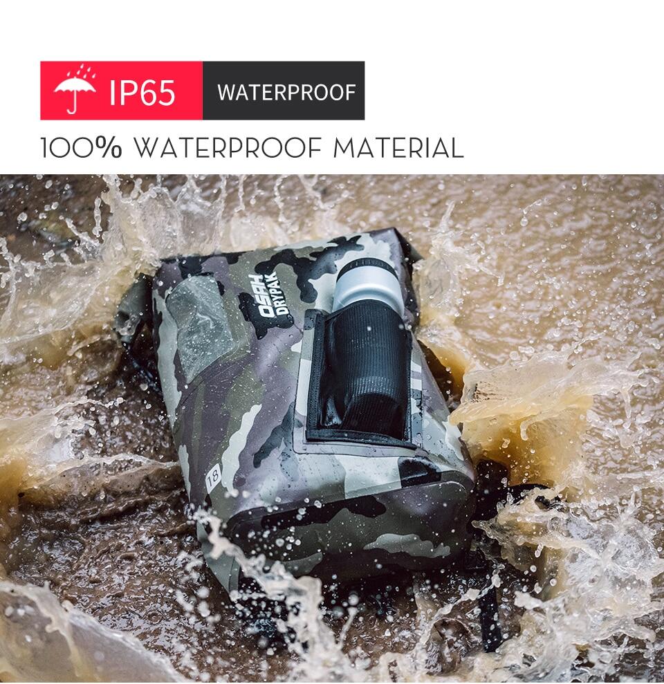 ②Waterproof Material: This waterproof bag adopted international top brs' ultra-high strength materials, combined hyperthermia hot pressing technique, with roll top design, waterproof effect far beyond the traditional waterproof zippers Velcro. It's also snow proof, hail proof, resistance to high temperature low temperature, you can travel with it in any weather. Don't need worry about your luggage.