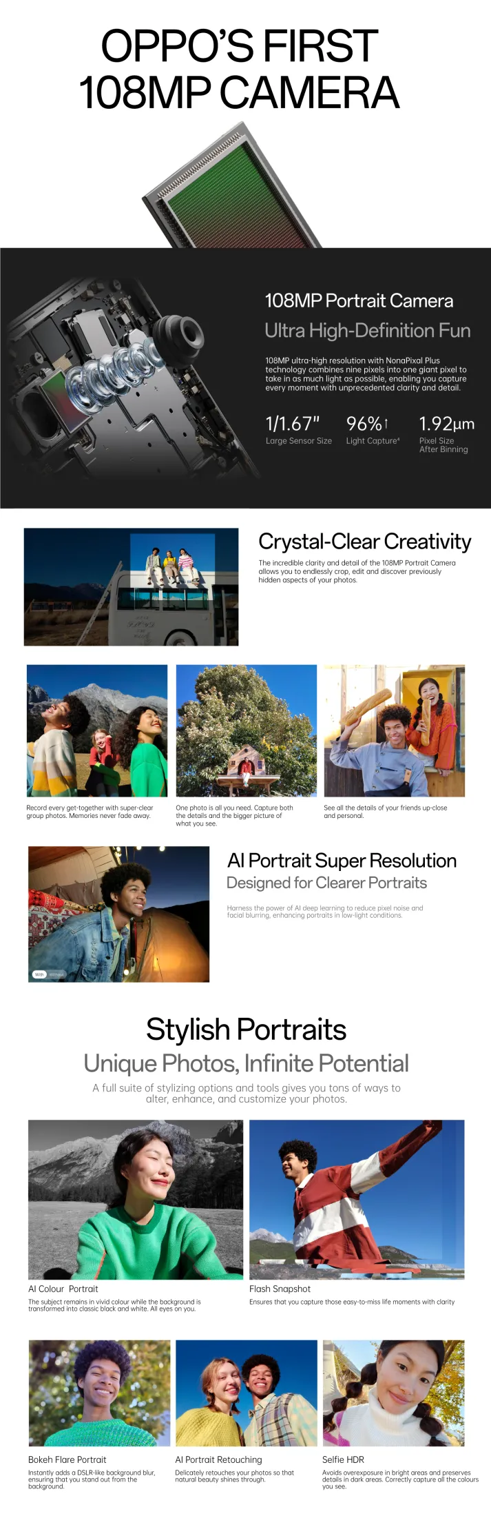 • 108MP Portrait Camera - 108MP main, 2MP depth, 2MP microlens